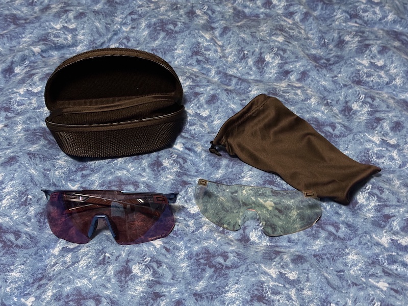 The Shimano S-Phyre Glasses come with a travel box, two lenses, an XL nosepiece and a protective bag. I went with the metallic blue lens because I don’t tend to need lenses that are super dark. I like lenses that aren’t super dark for when I dive into the forest on mountain bike rides. The darker the lens, the more trouble I have going from light to dark and back again. The second lens included is clear and is great for rides at the edges of the day.
