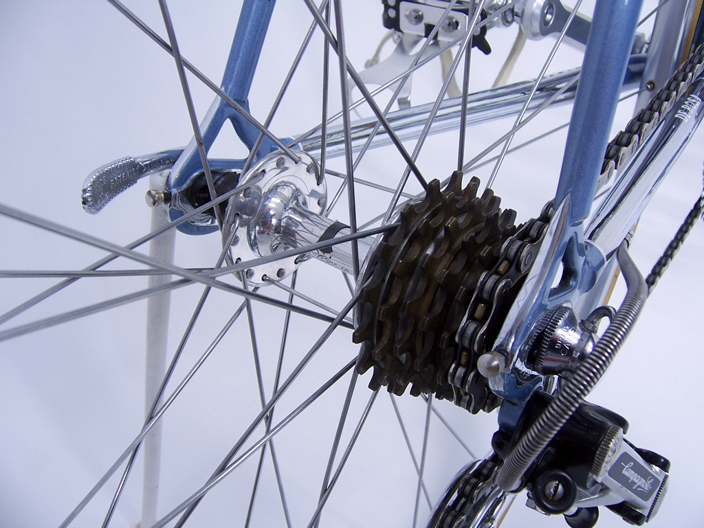 I trued the wheels, checked the adjustment for the headset, bottom bracket and hubs, replaced the worn brake shoes and then moved on to the drivetrain. The shifting worked well enough, save one obvious problem. The bike wouldn’t shift into the smallest cog.