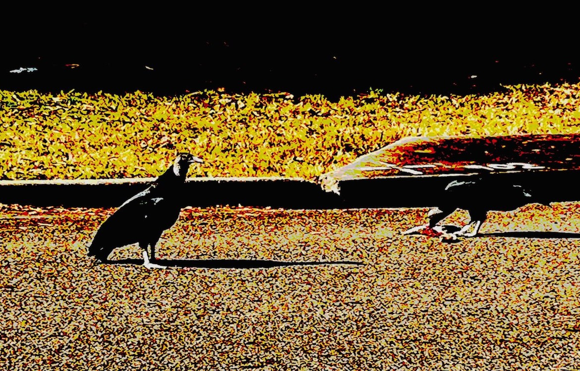 Dirty birds: Moving on, I think about animals often. Critters and children have always found me entertaining, but we’ll discuss kids some other time. My environs allow for year-round riding and among my favorite things about this place is the plethora of anything and everything that flies, swims, slithers, crawls or ambles that is not a human. Robot noted being a bird noticer in a recent column and I’d agree with that characterization and more for myself. I see all kinds of critters on every ride. Recently I encountered the guys in the masthead picture enjoying lunch at local trailhead. Like most animals in these places, they did not give AF about me or much of anyone else beyond hopping out of the way of cars coming and going. Buzzards are omnipresent and I just find their utterly nonplussed ways rather endearing.