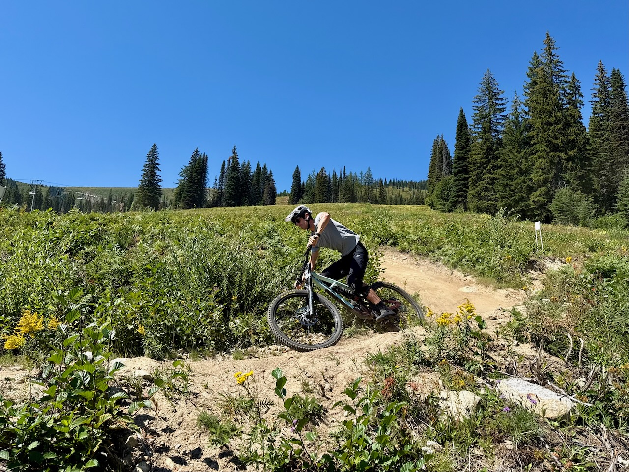 The trails ranged from as narrow as 2 feet wide in some spots to as sweeping as 8 or 10 feet in some of the switchbacks. Like Schweitzer, the closer to the top of the mountain I was, the rockier the terrain I rolled. As we arrived at the tail-end of the season, some of the trails suffered braking bumps and the odd divot, and to call the conditions dusty undersells how much of the brown pow-pow we sent flying. None of that spoiled the fun of riding the trails, but I can see that for a less-accomplished rider, arriving in June would offer a better opportunity to build skills.
